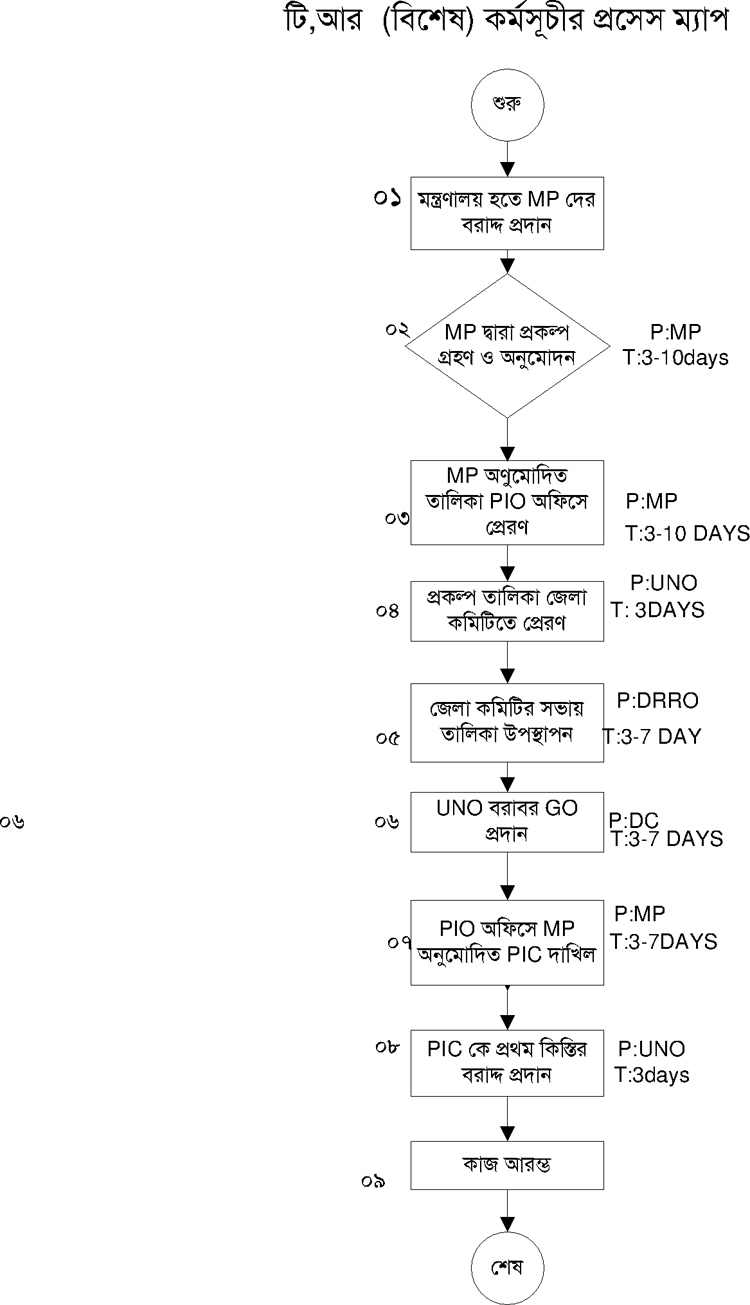 টি. আর কর্মসূচী বাস্তবায়নের প্রসেস ম্যাপ